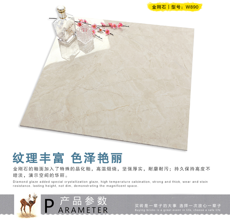 金曼古瓷磚廠家特價金剛石因高品質而得名,是一款極具天然石材效果和微晶石質感的仿石材瓷磚,它不但在價格、環保、耐用和清潔上極具優勢,在質感、規格、花色、重量等指標上,金剛石都遠遠勝于石材、拋光磚。相比其他種類的產品,它最大的特點可以用“高亮度、高耐磨、高平整、高逼真、高清晰、高環保”。