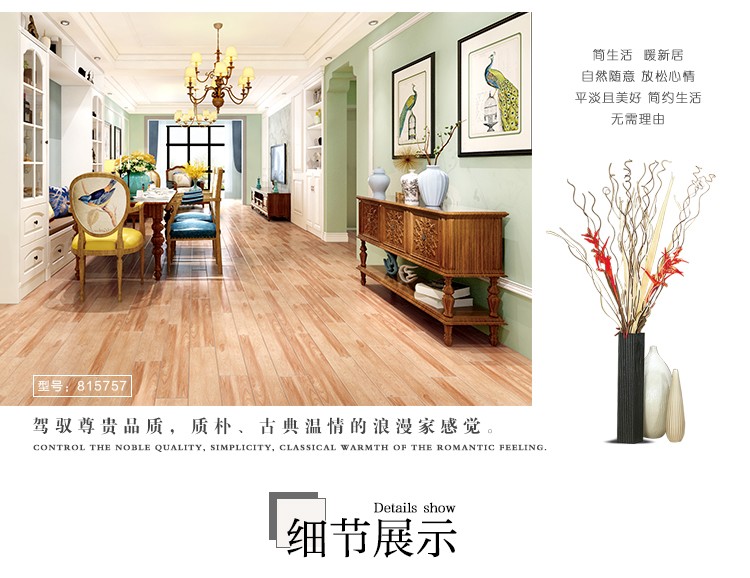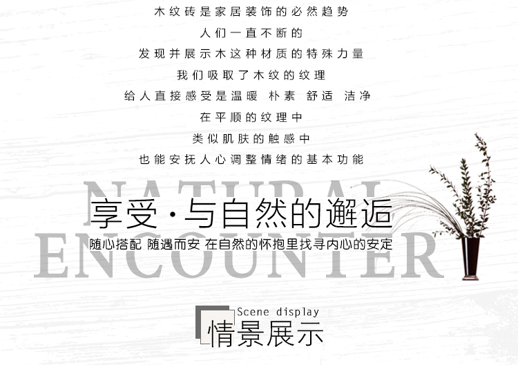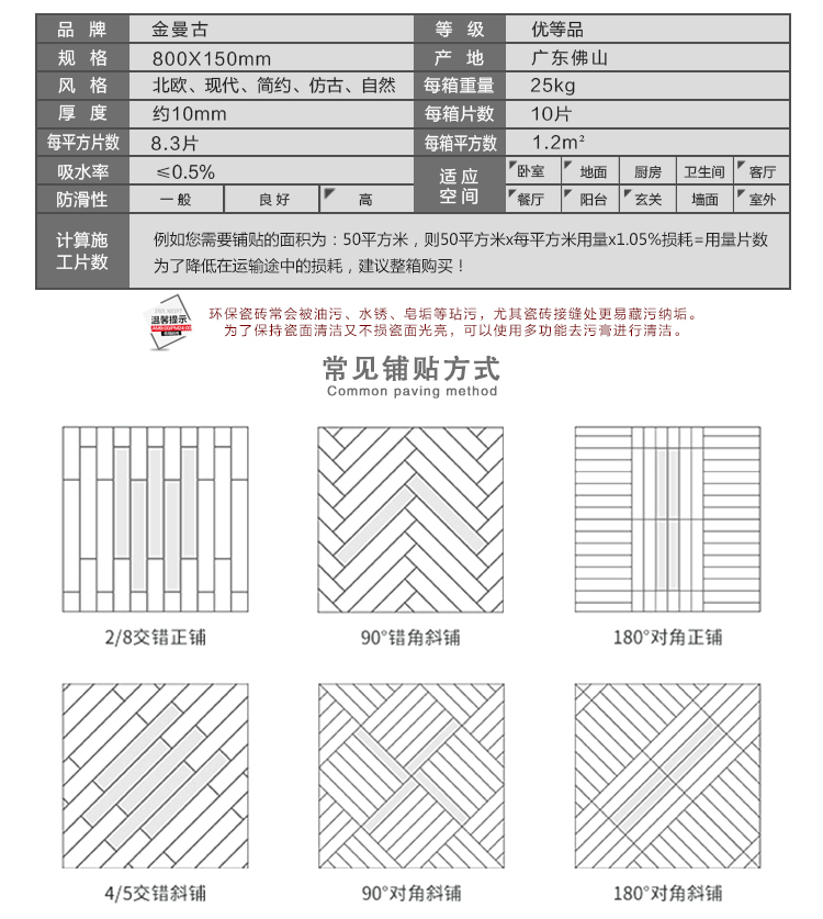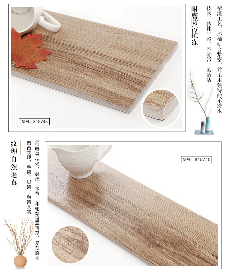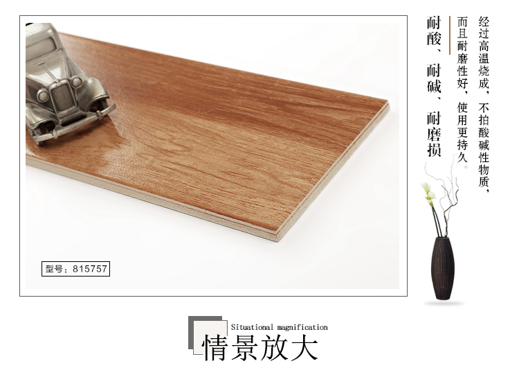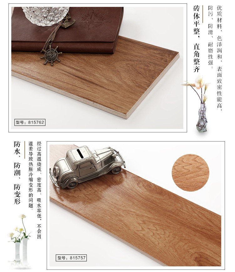 金曼古木紋磚,是一種表面呈現木紋裝飾圖案的環保建材.紋路逼真、自然樸實、沒有木地板褪色、不耐磨等缺點;曼古陶瓷木紋磚系列線條明快,圖案清晰為特色。本身具有阻燃,不腐蝕的特點,綠色、環保型建材;產品使用壽命長,耐磨,無需像木制產品那樣周期性地打蠟保養等.