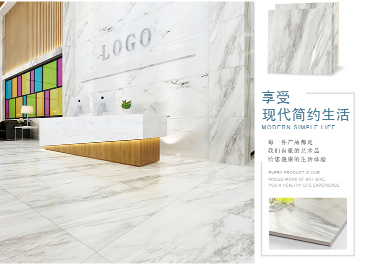 柔光瓷磚是磚面反射介于強光與弱光之間的一類瓷磚,其結合亮光類瓷磚的高調明艷裝飾和啞光類瓷磚的低調內斂搭配效果,通過動態柔光蠟拋技術,降低產品反光率,從而達到人體舒適的視覺感受以及無光污染的空間裝飾效果。優點:1.視覺舒適,無光污染 2.堅固耐磨,不易刮花.